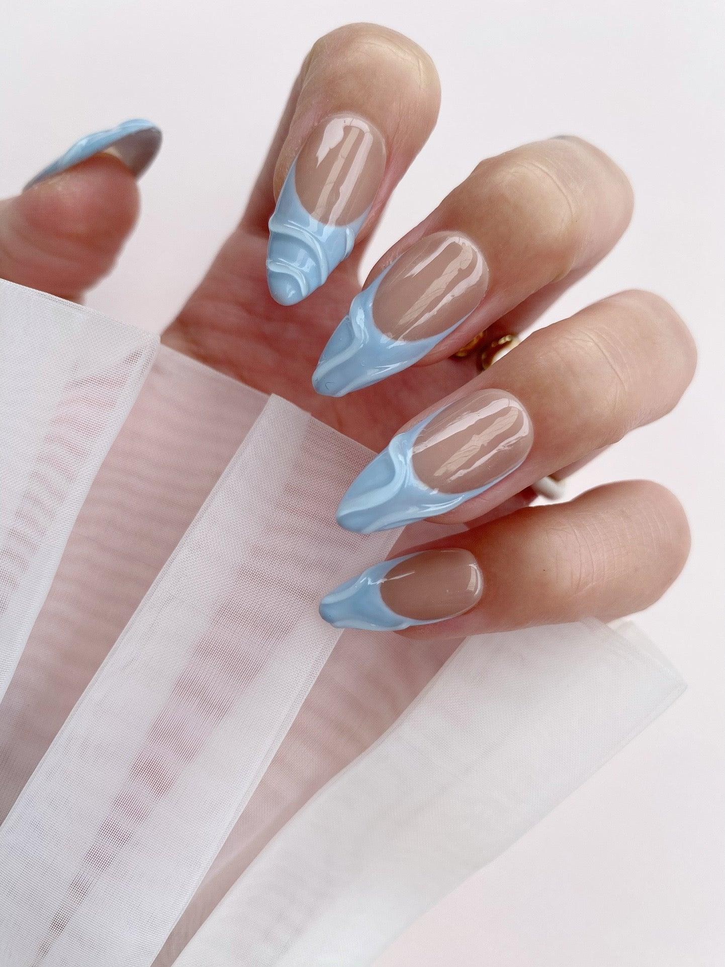 The Ice Dream nail design features a refreshing light blue gradient as the main tone, exuding a natural and elegant charm. The minimalist design perfectly combines with the soft tones, making it ideal for showcasing your fresh and refined beauty in the spring and summer seasons.