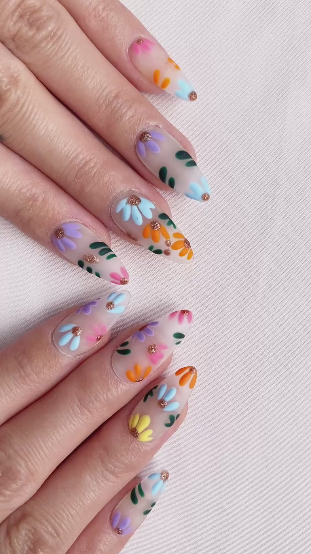 The Rainbow Blossoms nail design combines vibrant daisy colors, capturing the lively and natural spirit of spring and summer. This nail art is perfect for showcasing your personality while adding a unique splash of color and fun to your everyday style.